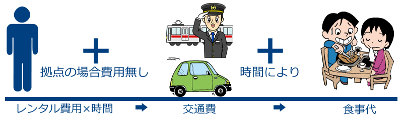 1時間レンタルで料金1000円の場合は、1000円+交通費となります。
